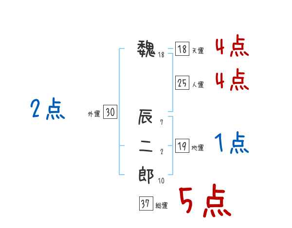 魏辰二郎さんの画数の鑑定結果