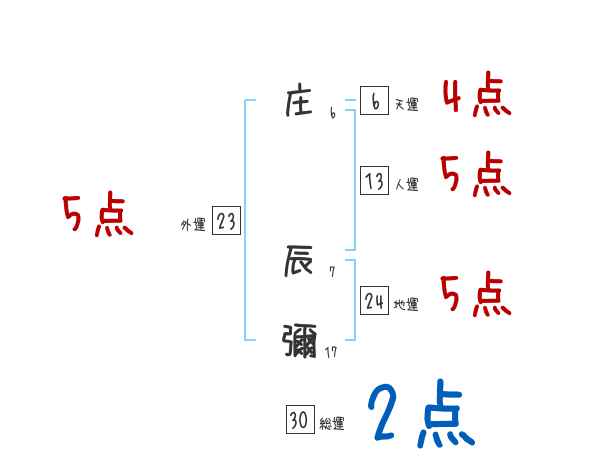 庄辰彌さんの画数の鑑定結果