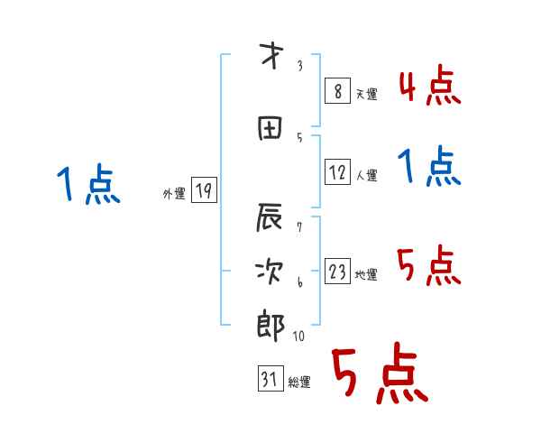 外運![]() | 才田辰次郎さんの外運は19画の1つ星!優れた才能を持ちますが、協調性が足りないことも。周りの人と協力する事を意識しましょう。 生活面を象徴する運勢です。外部から受ける影響力を表し、結婚運、家庭運や職場、環境への順応性を表します。 |