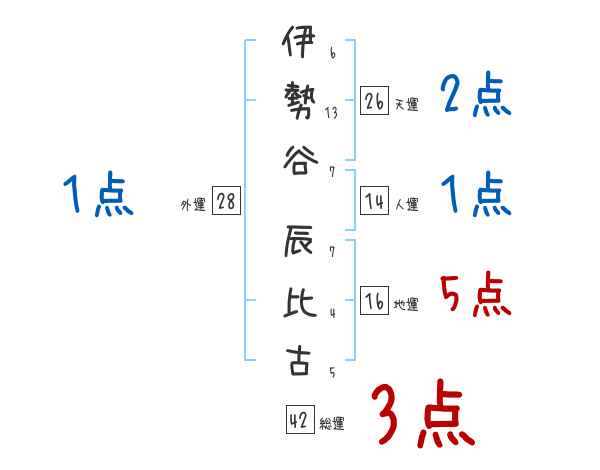 天運![]() | 伊勢谷辰比古さんの天運は26画の2つ星!波瀾万丈かも。信頼できる人を大事にしましょう。 家系が持つ宿命的な運勢を表します。祖先から受け継いだ苗字ですので自分の力が及びません。家柄を象徴します。 |