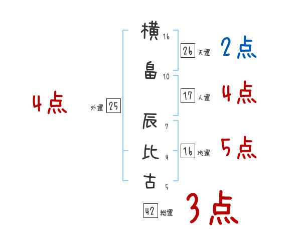 天運![]() | 横畠辰比古さんの天運は26画の2つ星!波瀾万丈かも。信頼できる人を大事にしましょう。 家系が持つ宿命的な運勢を表します。祖先から受け継いだ苗字ですので自分の力が及びません。家柄を象徴します。 |