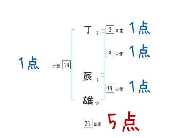 丁辰雄さんの画数の鑑定結果