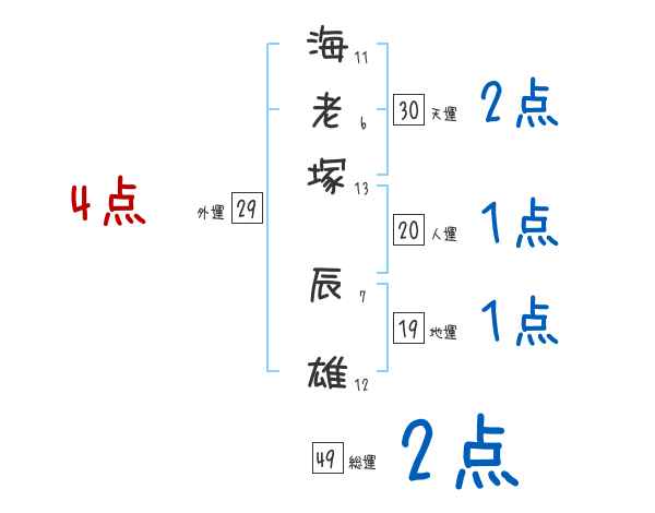 天運![]() | 海老塚辰雄さんの天運は30画の2つ星!浮き沈みの激しさに注意しましょう。 家系が持つ宿命的な運勢を表します。祖先から受け継いだ苗字ですので自分の力が及びません。家柄を象徴します。 |