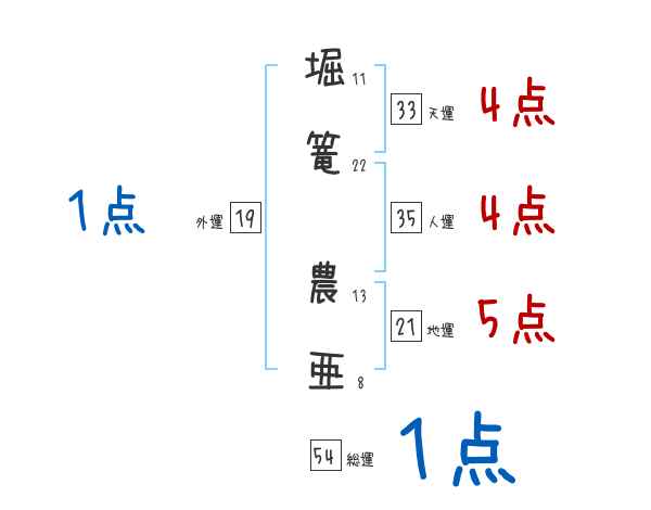 堀篭農亜さんの画数の鑑定結果