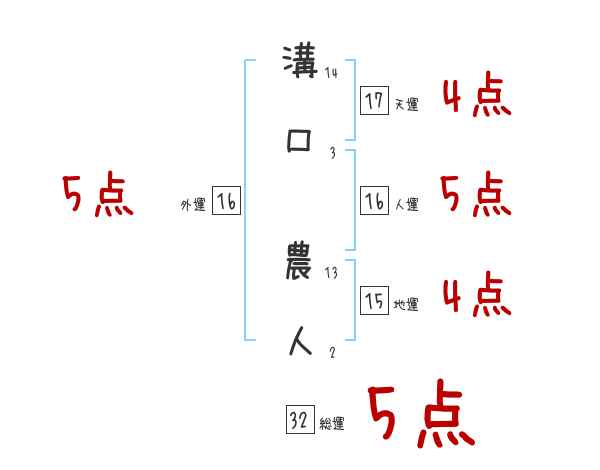 溝口農人さんの画数の鑑定結果