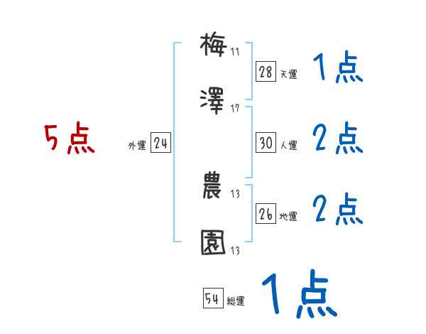梅澤農園さんの画数の鑑定結果