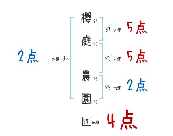 櫻庭農園さんの画数の鑑定結果
