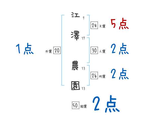 江澤農園さんの画数の鑑定結果