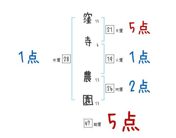窪寺農園さんの画数の鑑定結果
