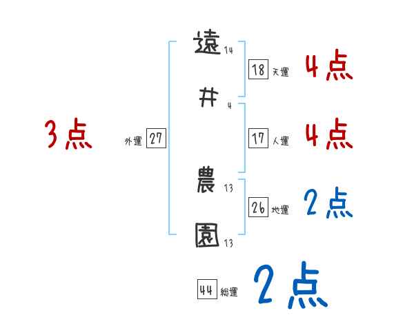 遠井農園さんの画数の鑑定結果