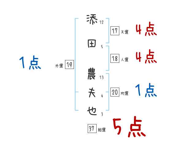 添田農夫也さんの画数の鑑定結果