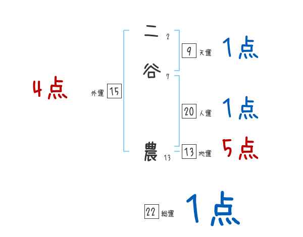 二谷農さんの画数の鑑定結果