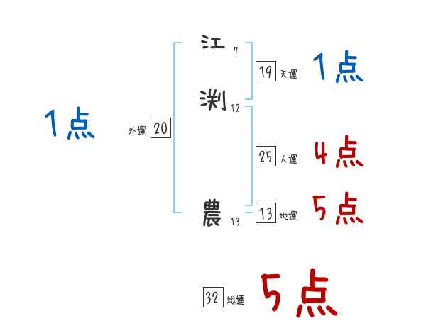 総運![]() | 江渕農さんの総運は32画の5つ星!柔軟性があり成功する。チャンスが多く金運が良い。 あなたの人生を表す1番重要な運勢です。生涯を通じて影響する総合運となり、主に50歳以降の晩年期に影響を及ぼします。 |