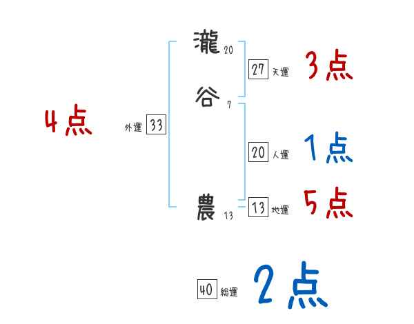 瀧谷農さんの画数の鑑定結果