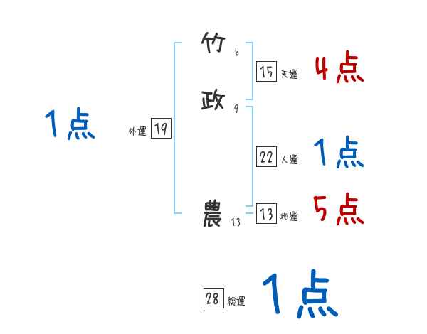 竹政農さんの画数の鑑定結果