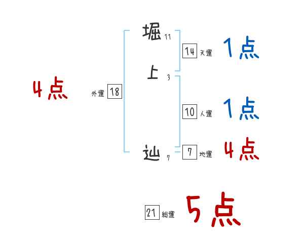 堀上辿さんの画数の鑑定結果
