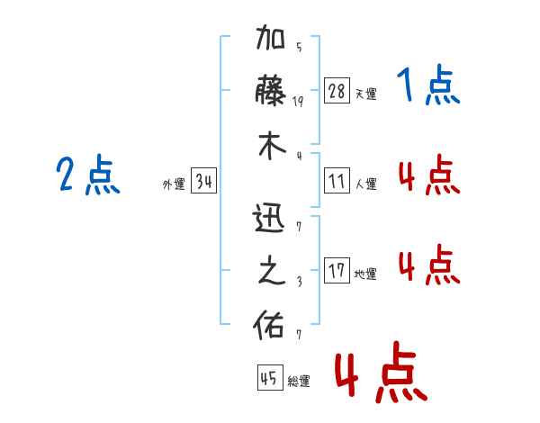 加藤木迅之佑さんの画数の鑑定結果