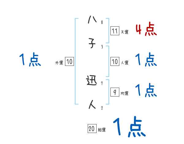 八子迅人さんの画数の鑑定結果