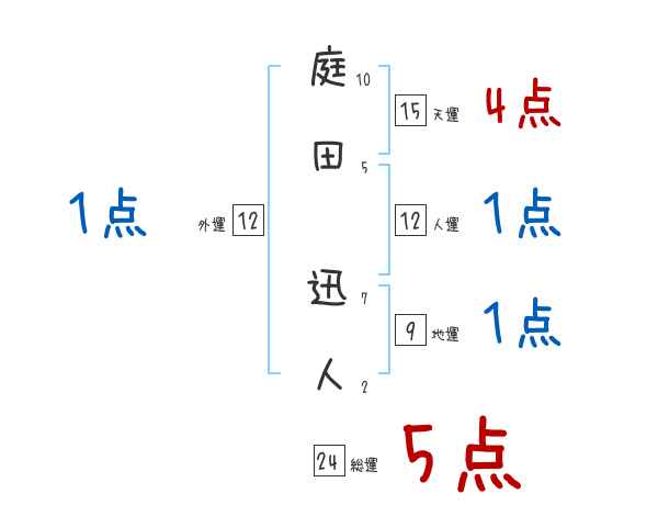 庭田迅人さんの画数の鑑定結果