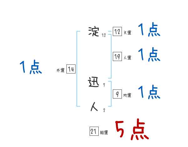 淀迅人さんの画数の鑑定結果