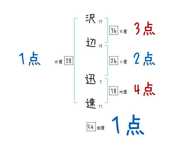 沢辺迅速さんの画数の鑑定結果
