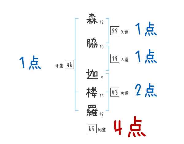 天運![]() | 森脇迦楼羅さんの天運は22画の1つ星!努力することが苦手ないっぽう手先が器用。芸術性にも優れる。 家系が持つ宿命的な運勢を表します。祖先から受け継いだ苗字ですので自分の力が及びません。家柄を象徴します。 |