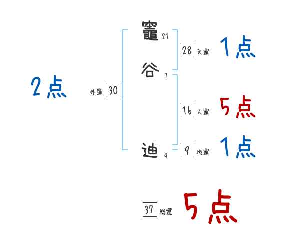 外運![]() | 竈谷迪さんの外運は30画の2つ星!浮き沈みの激しさに注意しましょう。 生活面を象徴する運勢です。外部から受ける影響力を表し、結婚運、家庭運や職場、環境への順応性を表します。 |