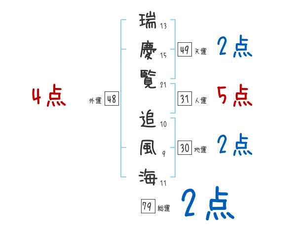 瑞慶覧追風海さんの画数の鑑定結果
