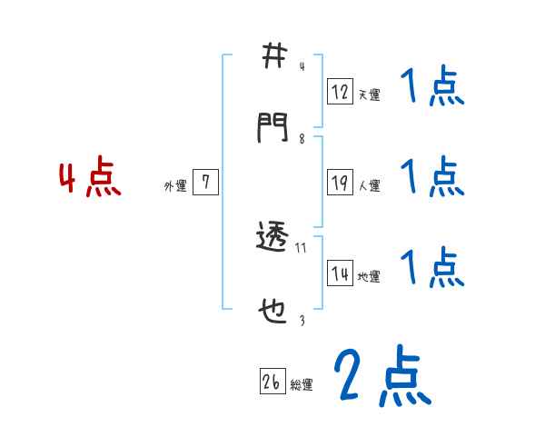 井門透也さんの画数の鑑定結果