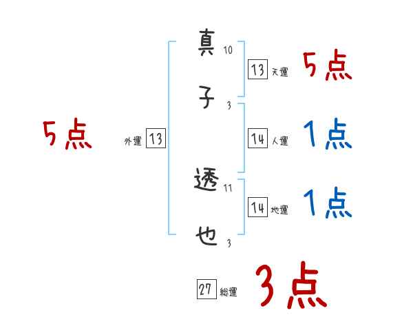 真子透也さんの画数の鑑定結果