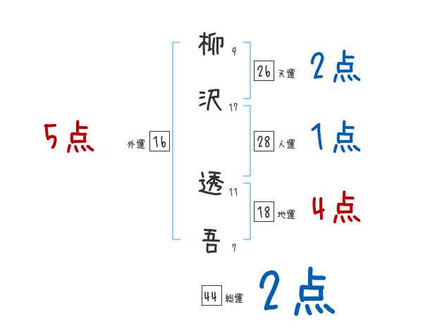 柳沢透吾さんの画数の鑑定結果
