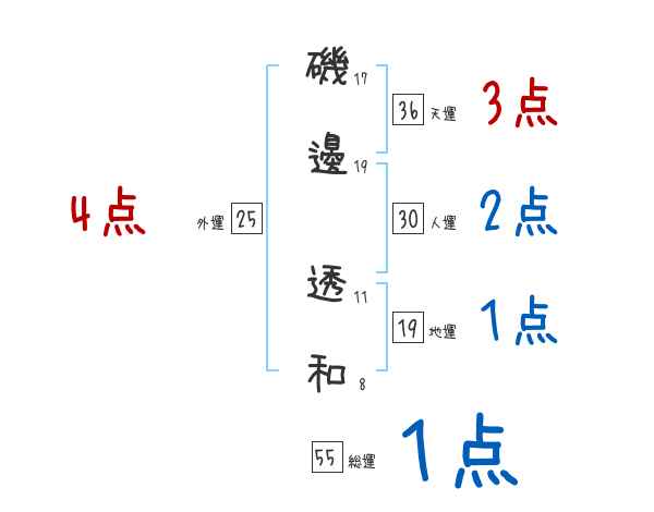 磯邊透和さんの画数の鑑定結果