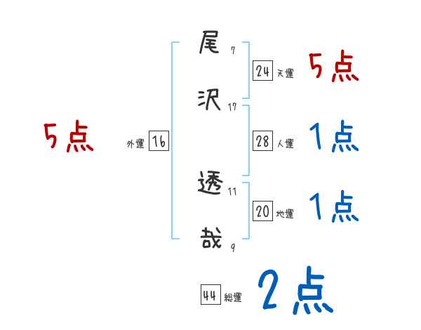 尾沢透哉さんの画数の鑑定結果