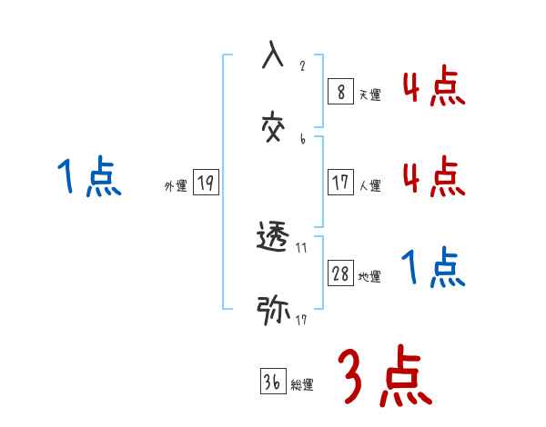 入交透弥さんの画数の鑑定結果