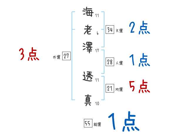 海老澤透真さんの画数の鑑定結果