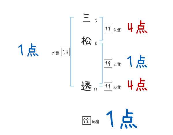 三松透さんの画数の鑑定結果