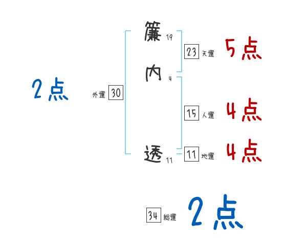 簾内透さんの画数の鑑定結果