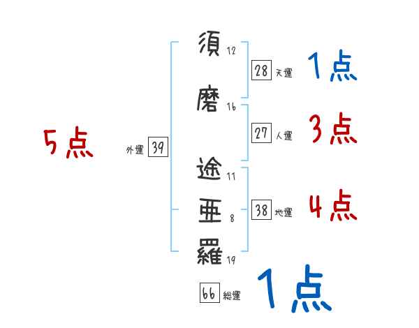 須磨途亜羅さんの画数の鑑定結果