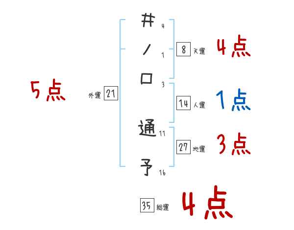 井ノ口通予さんの画数の鑑定結果