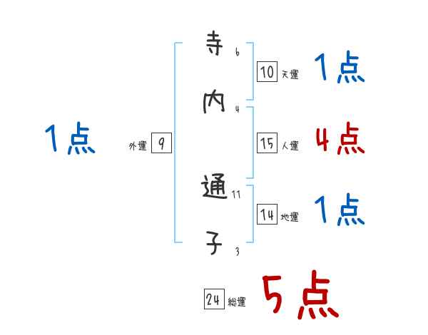 寺内通子さんの画数の鑑定結果