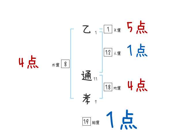 乙通孝さんの画数の鑑定結果