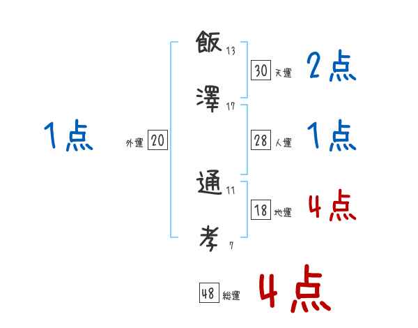 飯澤通孝さんの画数の鑑定結果