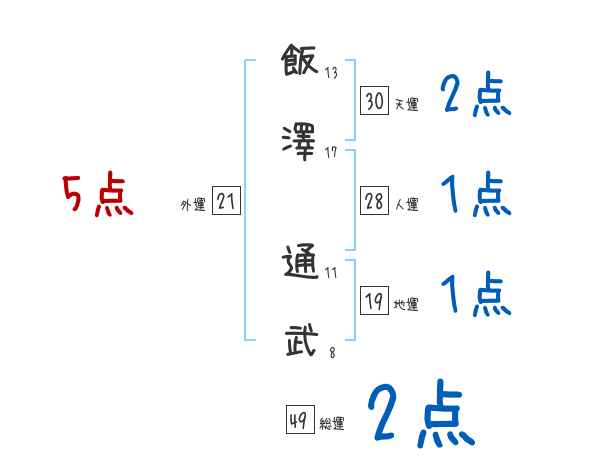 飯澤通武さんの画数の鑑定結果