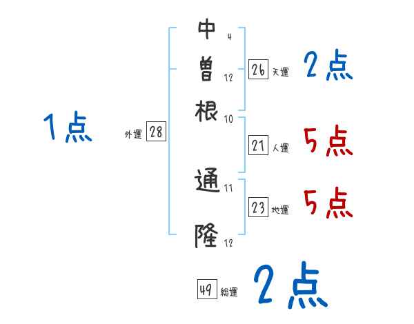 中曽根通隆さんの画数の鑑定結果