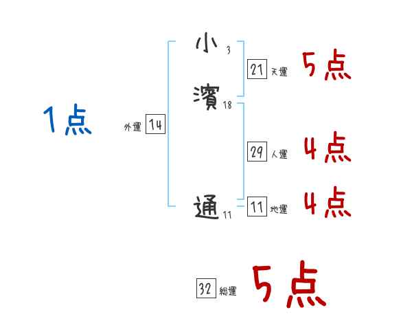 小濱通さんの画数の鑑定結果