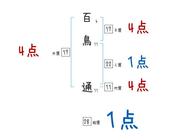 百鳥通さんの画数の鑑定結果