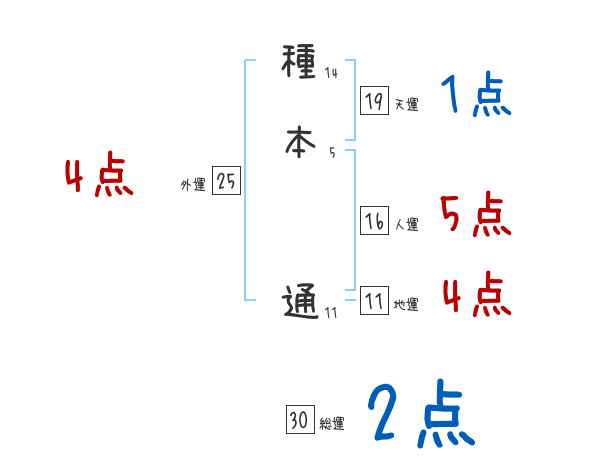 人運![]() | 種本通さんの人運は16画の5つ星!人望が厚く大きく発展する。逆転成功が見える。 性格や才能などを表す2番目に重要な運勢です。人間関係や協調性、社会的な成功に影響します。主に20歳から50歳ぐらいまでの中年期の運勢を表します。 |