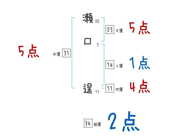 瀬口逞さんの画数の鑑定結果