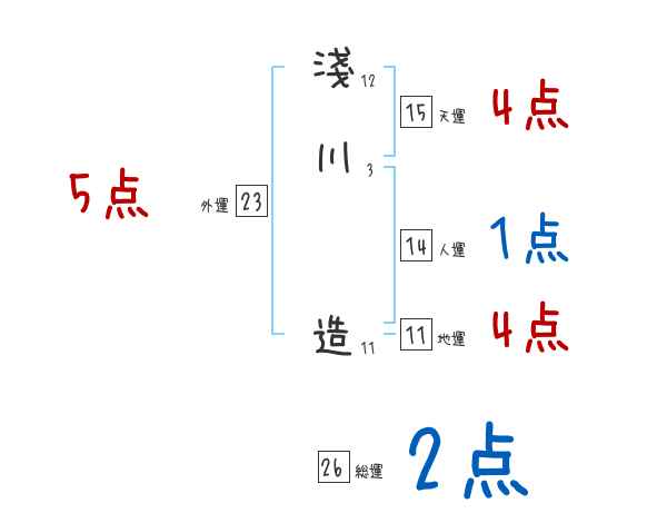 外運![]() | 淺川造さんの外運は23画の5つ星!想像力に優れ活力がある。一代で成功し名誉を手に入れる。 生活面を象徴する運勢です。外部から受ける影響力を表し、結婚運、家庭運や職場、環境への順応性を表します。 |