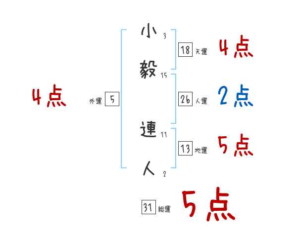 小毅連人さんの画数の鑑定結果